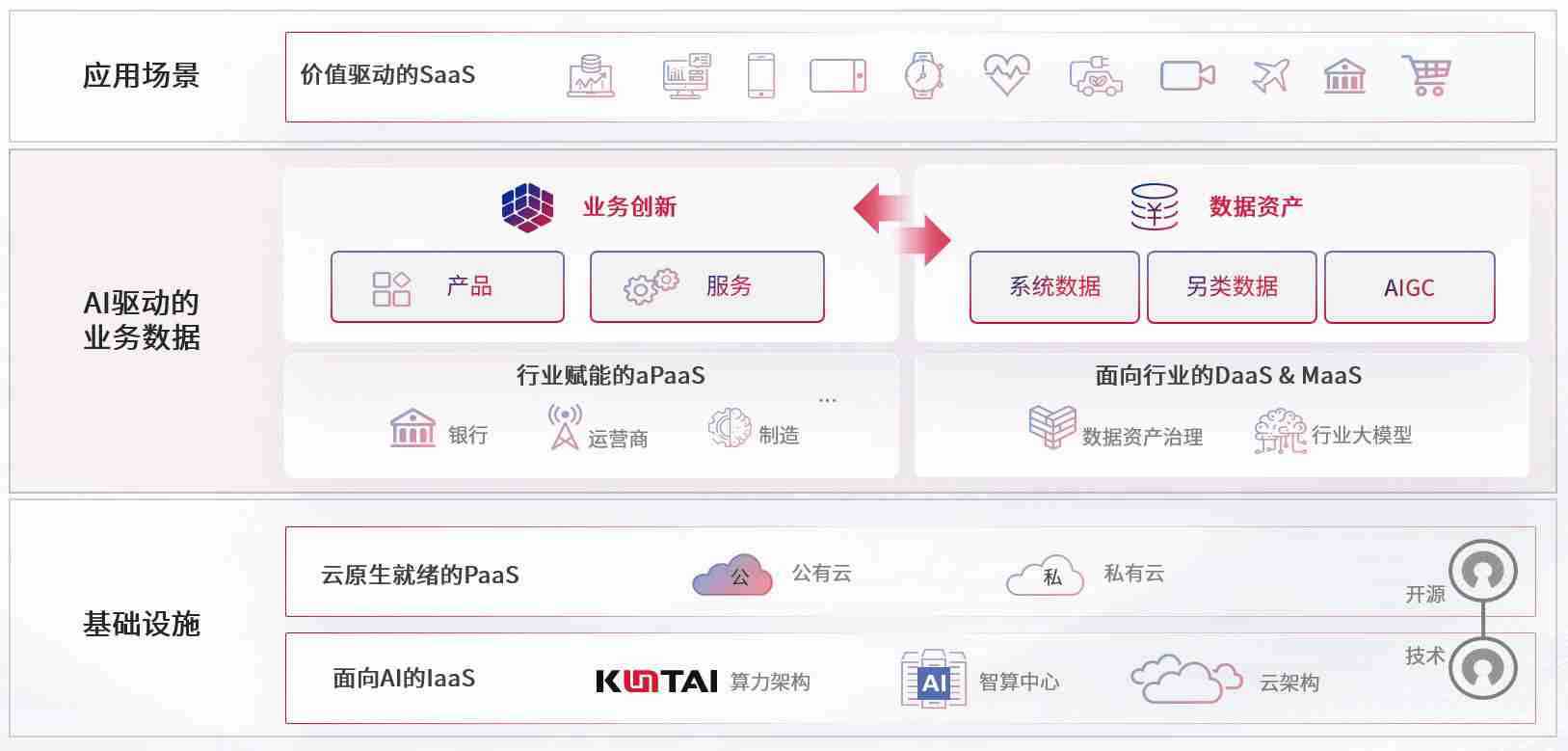 数字时代,,,,围绕企业数字化转型的关键要素,,,z6com尊龙凯时数码开创性的提出数云融合战略和技术体系框架,,,,着力在云原生、、、、数字原生、、AI原生和信创产业上架构产品和服务能力,,,,为处在不同数字化转型阶段的快消零售、、汽车、、、、金融、、医疗、、、、政企、、、、教育、、、、运营商等行业客户提供泛在的敏捷IT能力和融合的数据驱动能力,,,构建跨界融合创新的数字业务场景和新业务模式,,助力企业级客户建立面向未来的核心能力和竞争优势,,全面推动社会的数字化、、智能化转型升级。。